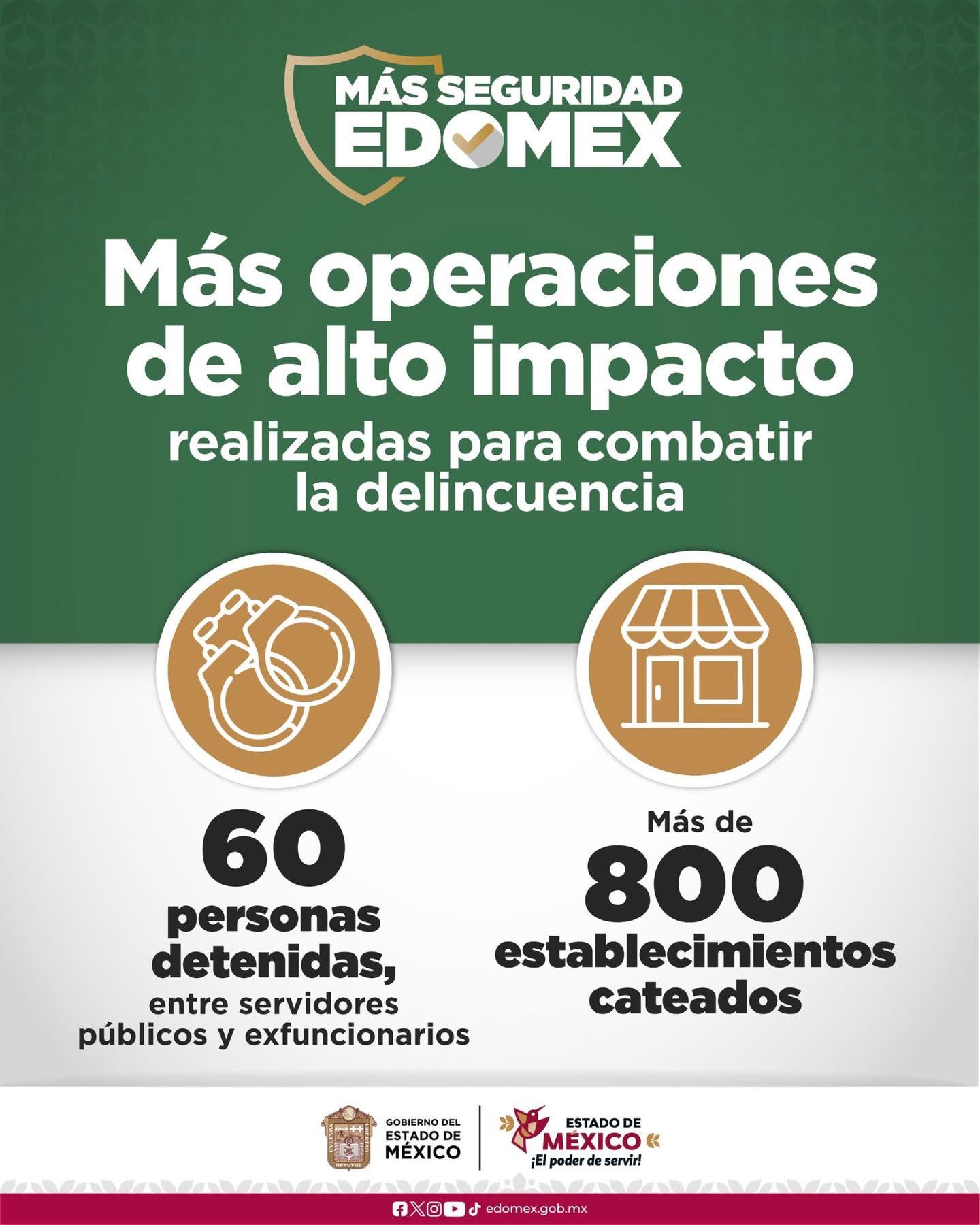 Destaca la disminución de delitos de alto impacto como homicidios, feminicidios, robo en transporte público y en carreteras.