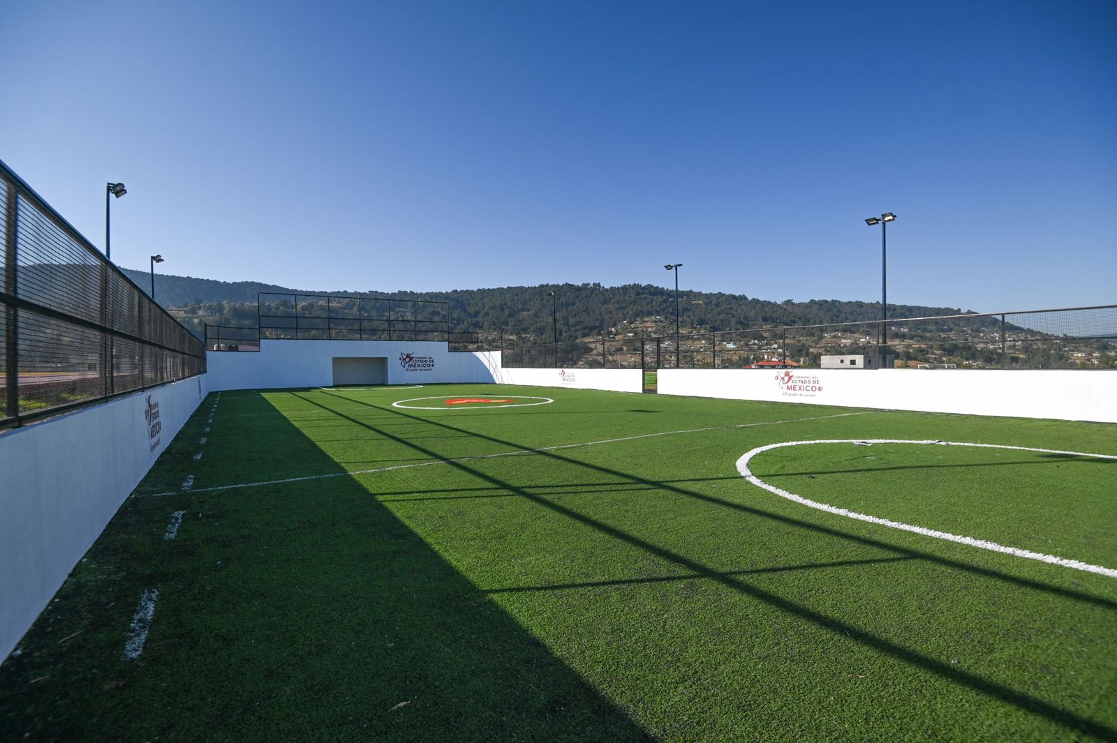 Cuenta con instalaciones que integran componentes pensados para todos los integrantes de una familia. Incluye una cancha de futbol con pasto sintético, una trotapista con tartán y una cancha de futbol rápido, además de una cancha de usos múltiples.
