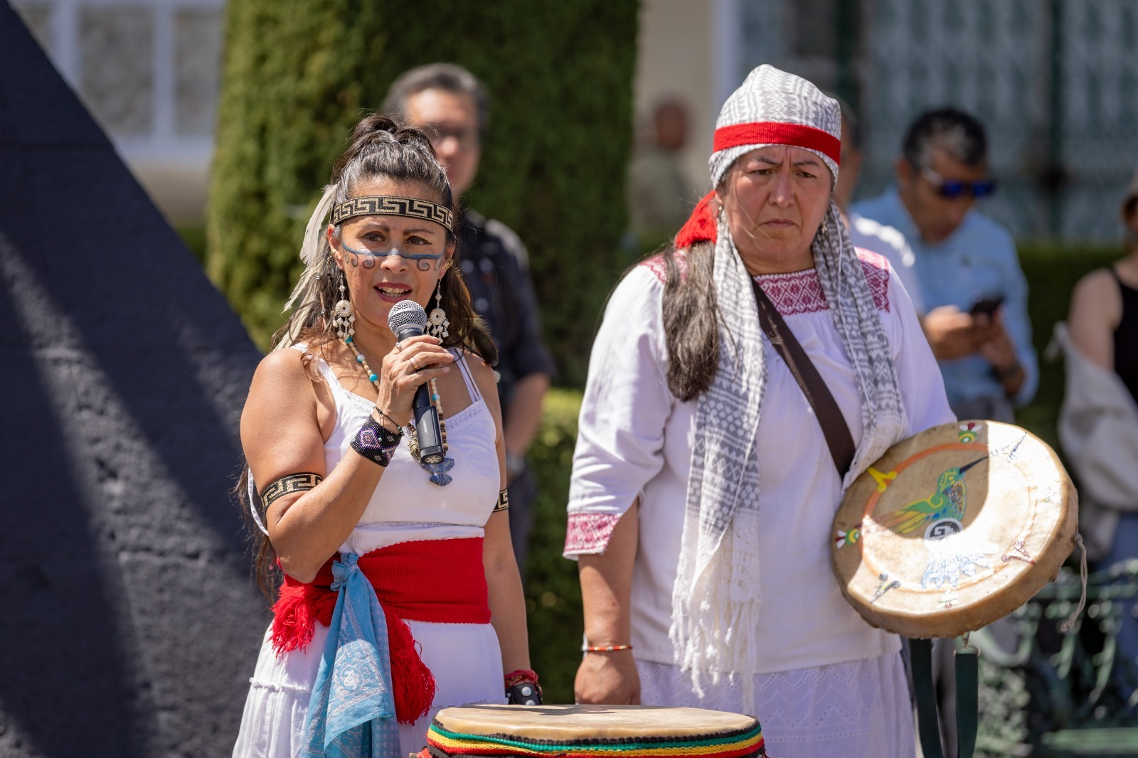 Como parte del programa, se presentó un poema en lengua náhuatl como tributo a la primavera, además de danzas tradicionales y cantos en náhuatl y español, expresiones que contribuyen a la transmisión viva del patrimonio cultural.