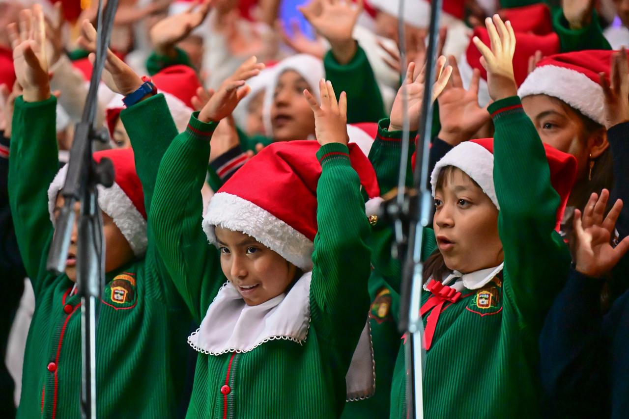 La gobernadora Delfina Gómez reconoció el talento de 260 niñas y niños de escuelas de Toluca, El Oro, Xonacatlán y Metepec, quienes deleitaron a las y los asistentes a la Casa del Pueblo con la interpretación de cinco piezas musicales navideñas entre las que se encuentran ‘El Niño del tambor‘ y ‘Noche de Paz’, además entregó diplomas de participación a estudiantes y docentes.