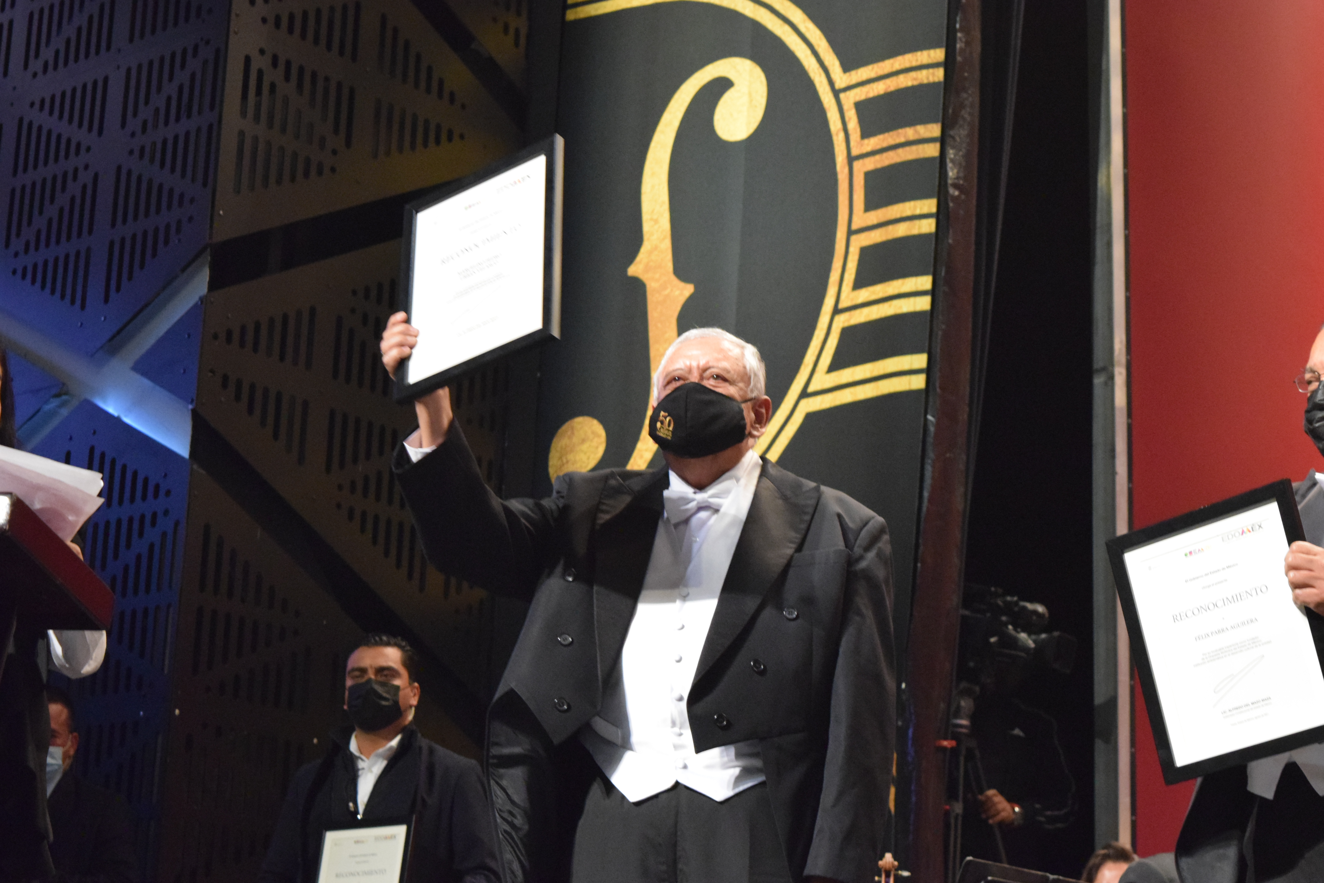 “La enfermedad que tengo no tiene remedio, pero lucho para vivirla bien y aquí estoy. Gracias”, expresó Enrique Bátiz, quien recibió del público congregado en el Teatro Morelos un estruendoso aplauso de pie en atención a su trayectoria e ingenio para crear esta Orquesta.