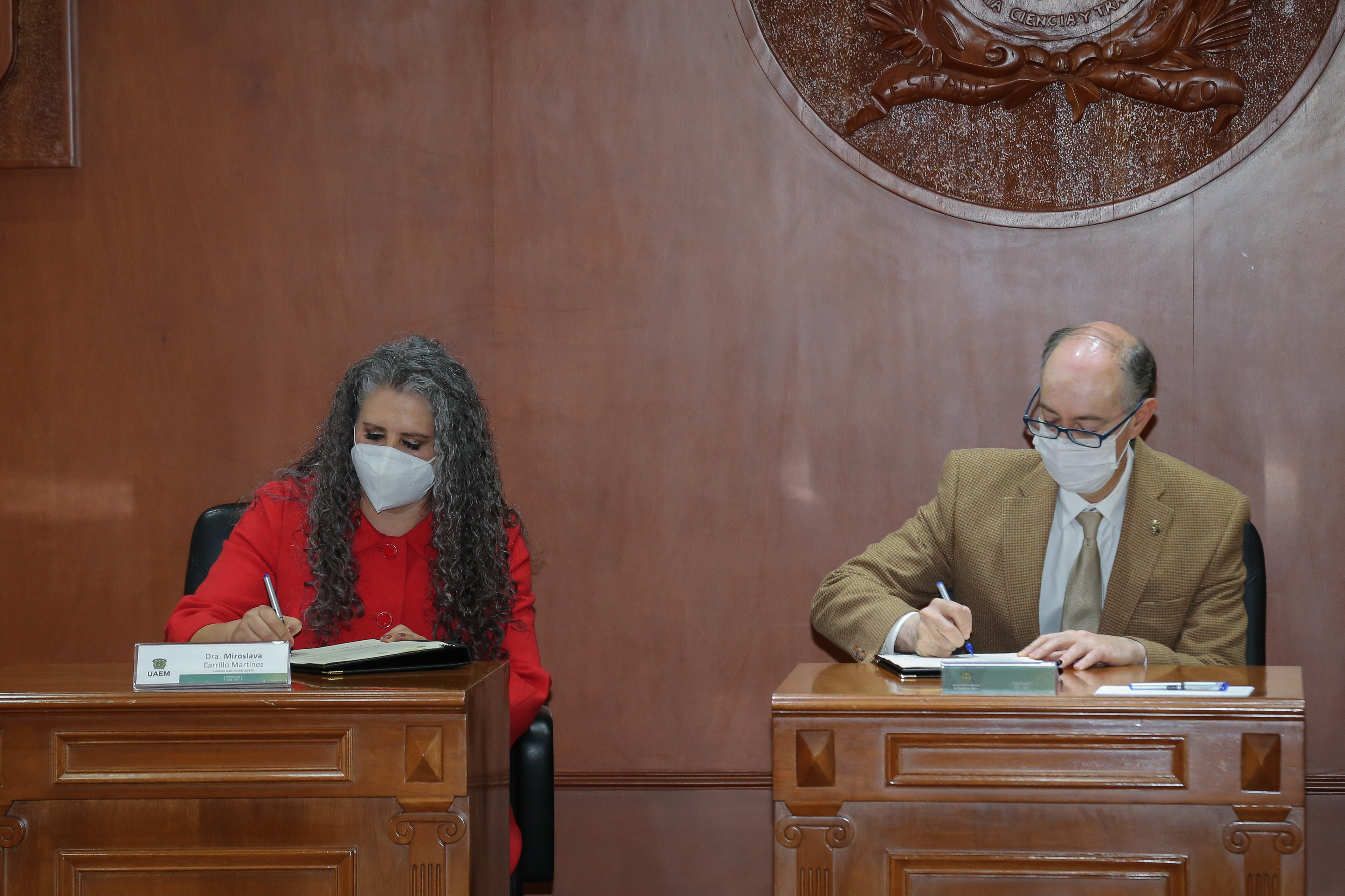 Con el firme propósito de que el Estado de México cuente con profesionales del servicio público eficientes y eficaces, los titulares de la Universidad Autónoma del Estado de México (UAEM) y el Órgano Superior de Fiscalización del Estado de México (OSFEM), Carlos Eduardo Barrera Díaz y Miroslava Carrillo Martínez, respectivamente, firmaron un convenio de colaboración.