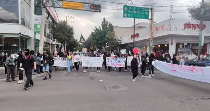 El contingente partió del Monumento al Maestro, integrado principalmente por paristas de la Universidad Autónoma del Estado de México (UAEMex), recorrió las principales calles de la capital mexiquense para arribar a Palacio de Gobierno.