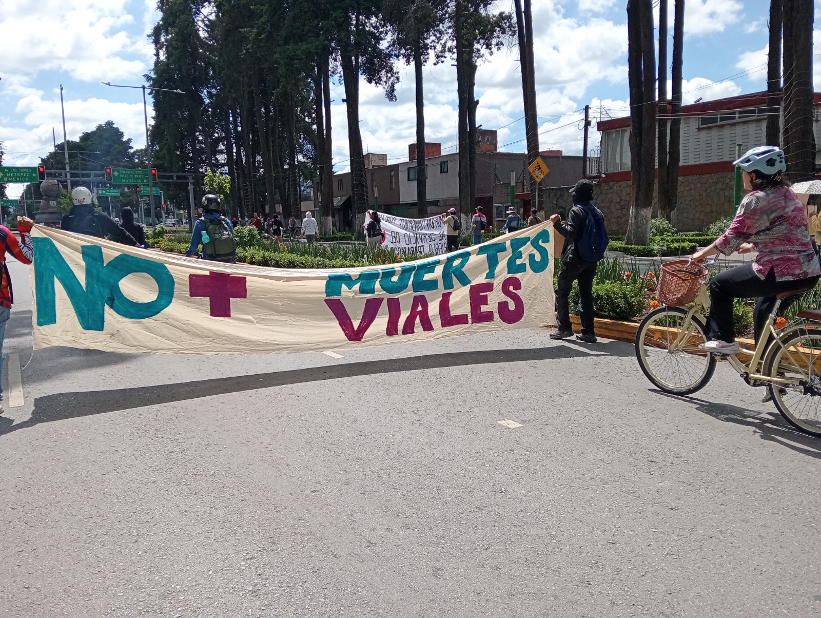 Desde el punto de reunión, los manifestantes se dirigieron al monumento a Cristobal Colón, en la intersección de la avenida del mismo nombre con Paseo Tollocan, donde bloquearon los carriles en ambos sentidos.