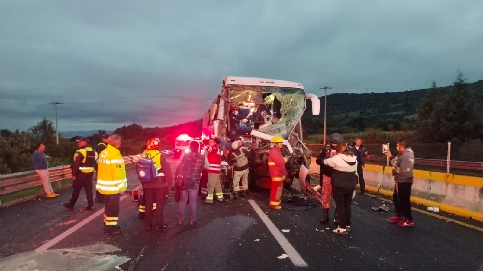 Por lo menos 16 personas resultaron lesionadas, derivado de un aparatoso choque de un autobús de pasajeros sobre la autopista México–Cuautla a la altura del municipio de Tepetlixpa.