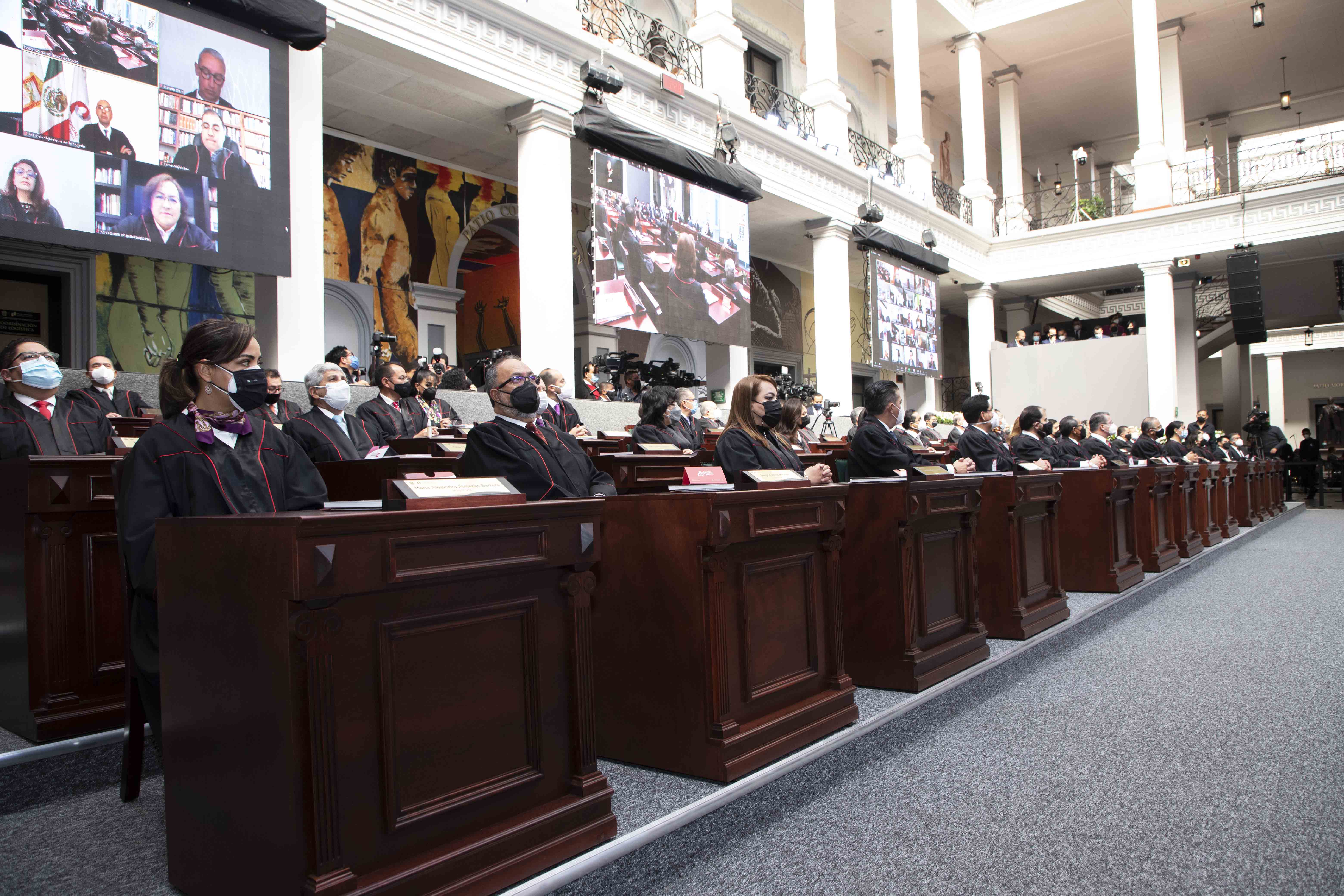 Ante las y los magistrados integrantes del Pleno del Tribunal Superior de Justicia, Sodi Cuellar señaló que durante este año, se rompieron paradigmas y se fomentó la justicia como actividad esencial que no admite demora ni puede suspenderse. Año de transformaciones que permitieron al PJEdomex posicionarse como un poder innovador y comprometido con la sociedad.