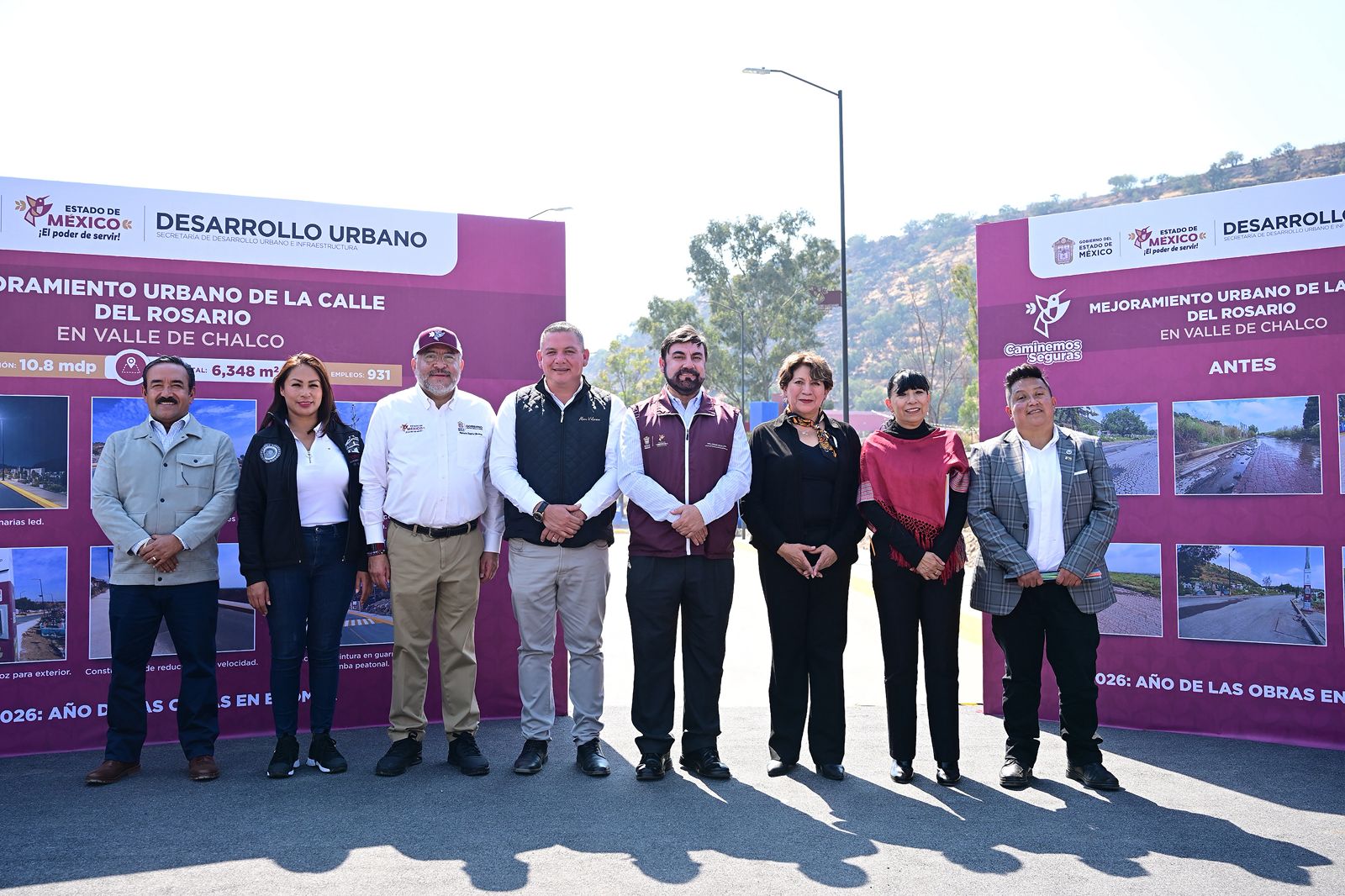 La gobernadora Delfina Gómez Álvarez entregó el mejoramiento urbano integral de la calle Del Rosario, como parte de la estrategia Caminemos Seguras Edomex, mediante la cual se recuperan espacios públicos y se benefició a más de 2 mil mujeres. La obra es resultado del trabajo interinstitucional orientado a atender rezagos históricos y mejorar la calidad de vida de la población.