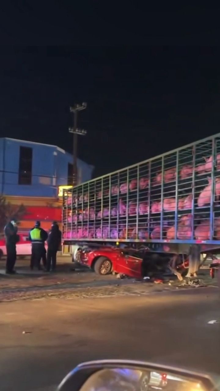 Al menos una persona resultó gravemente lesionada tras registrarse un fuerte choque entre un automóvil compacto contra un tráiler cargado de cerdos sobre la carretera México-Texcoco, a la altura del kilómetro 22 +500, municipio de Los Reyes La Paz.