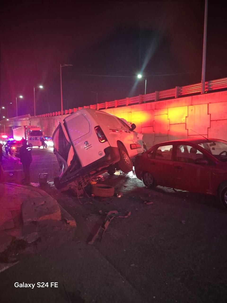 Pero al llegar al kilómetro 42 a la altura del Hospital General Regional 200, colonia San Jerónimo chocó contra un automóvil compacto Chevy y posteriormente golpeó otro vehículo.