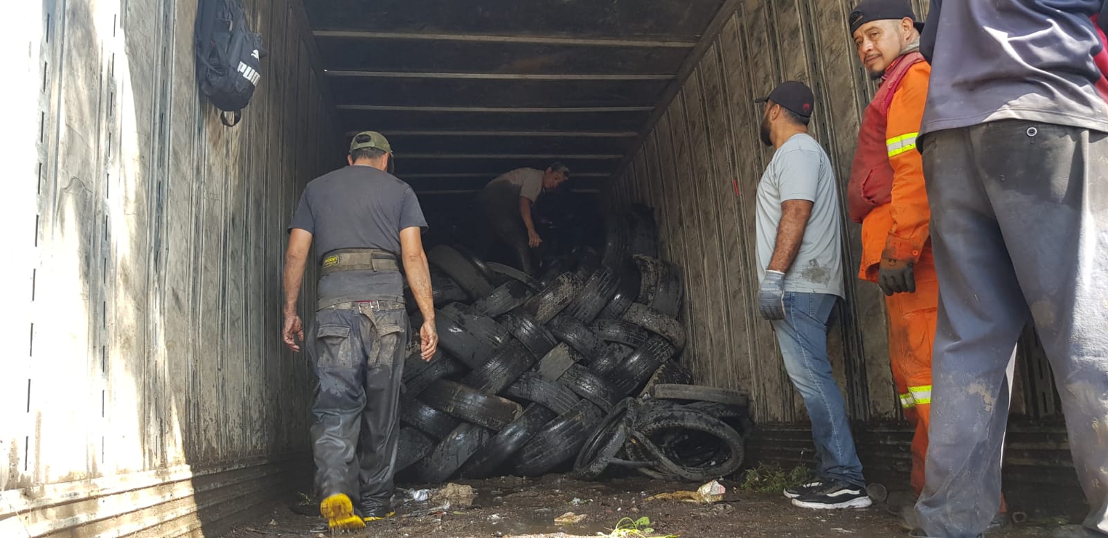 La jefa del Departamento de Residuos Sólidos, Socorro Guevara Fernández, informó que por instrucciones de la presidenta municipal, Martha Guerrero Sánchez, se llevó a cabo la entrega las llantas recolectadas en la vía pública del territorio local, con el fin de desalojar el centro de acopio instalado en la comunidad de Coaxusco.