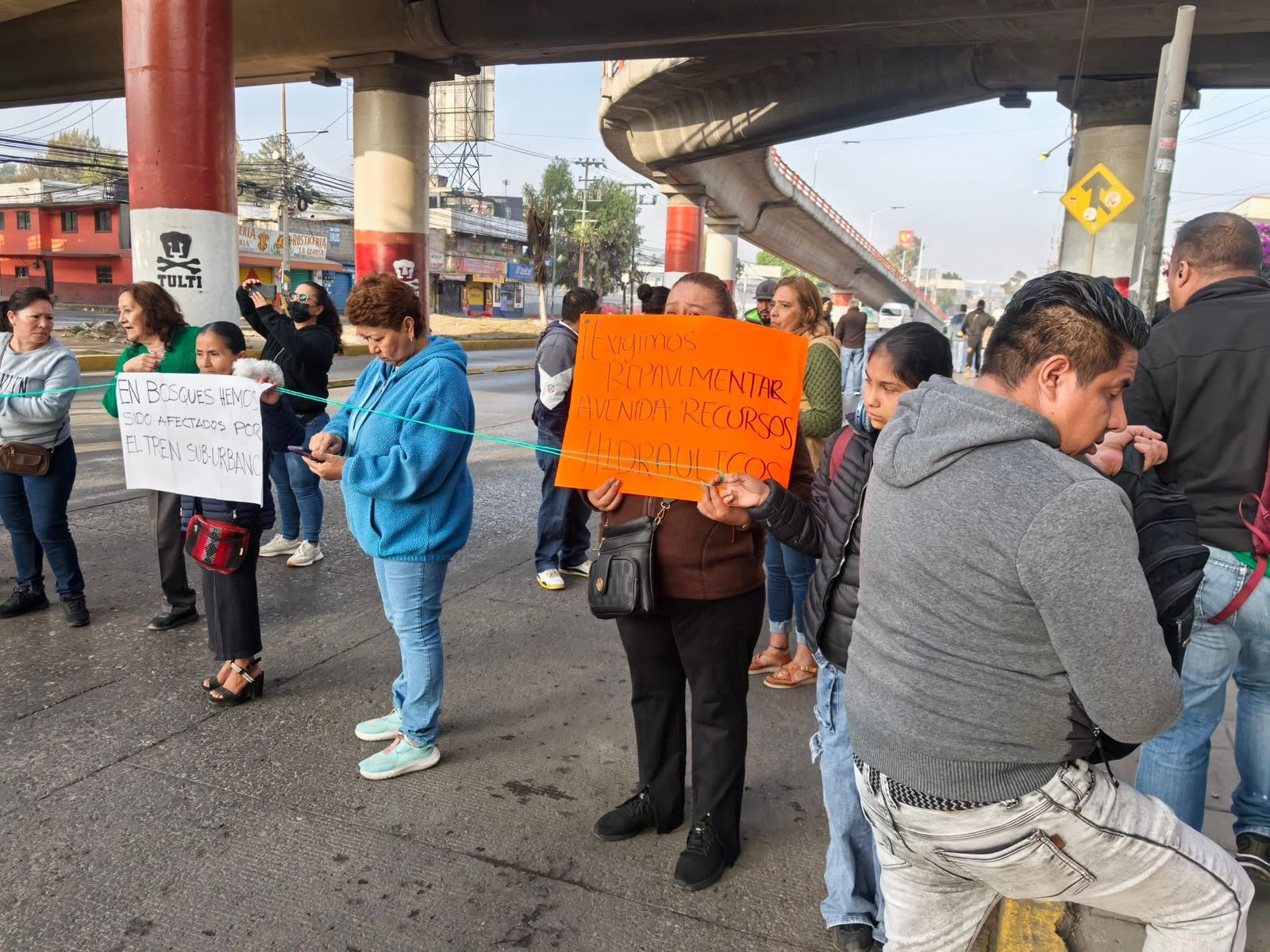 Vecinos de las colonias Cocem, Lazaro Cárdenas y Bosques, del municipio de Tultitlán, bloquearon la avenida José López Portillo a la altura de la bandera, debido al incumplimiento de los acuerdos con autoridades federales ante la construcción del Tren Suburbano.