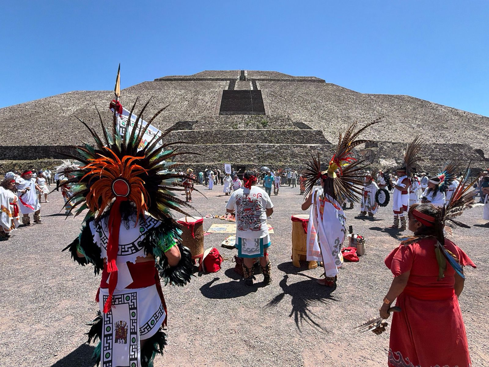 Cientos de visitantes acudieron a la Zona Arqueológica de Las Pirámides de Teotihuacán para recibir el equinoccio de primavera, quienes alzaron las manos hacia el astro Sol para llenarse de energía y dar gracias a la madre tierra.
